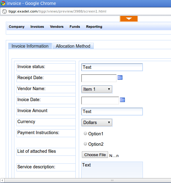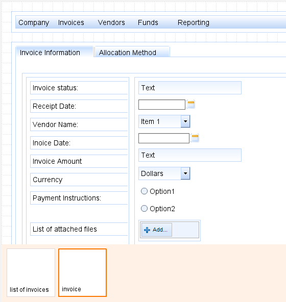 Starting with screen prototype, notice that we have two screens (list of invoices and invoice):