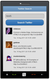 If you go to our Twitter Search example app at http://gotiggr.com/preview/16536, you’ll see something like this (try it on your mobile device):