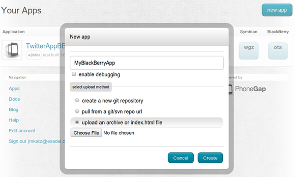 - Sign up for PhoneGap Builder. A free account is available