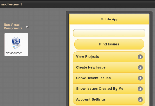 Once the service is defined, to use it on a screen, a special Data Source component has to be associated with the screen. Once the Data Source component is associated (through dragging and dropping on the screen), it can be used to specify the mapping of UI input components to provide input data for the service. When the service is done executing, the data source is used to specify the mapping of the result (output) back to UI components for displaying output.