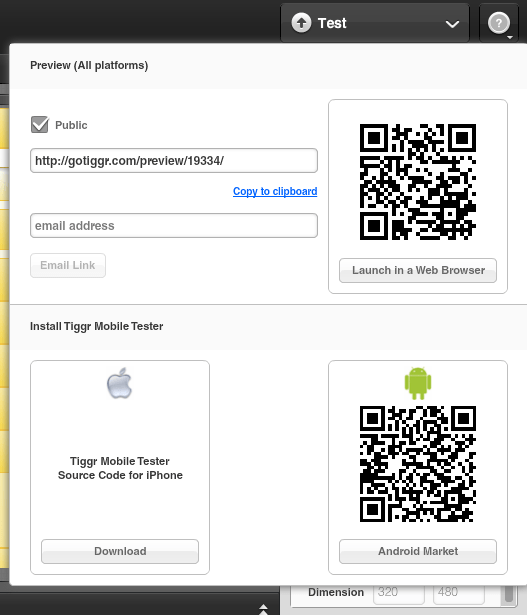 Testing in a desktop browser is definitely great, but that’s not where the app will be running, right? You want to test it on the mobile device, in a mobile browser. In order to get the app on the mobile device, make the app public. Then you will get a number of options: