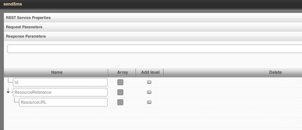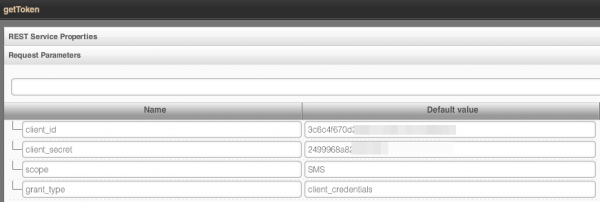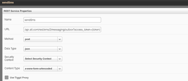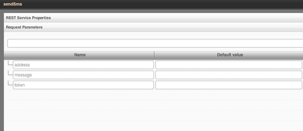 Once we got the token, we can invoke the actual SMS service (sendSms) but first it has to be defined. Setting service URL: