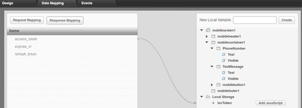 Next is data binding for getToken service. No input binding is needed as all inputs are set to default values: