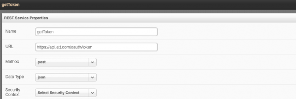 To send an SMS message using AT&T API requires first authenticating and getting a special token. getToken service does that. Setting up service URL: