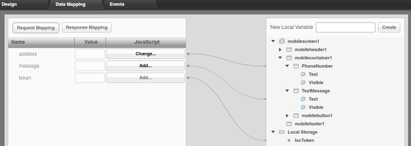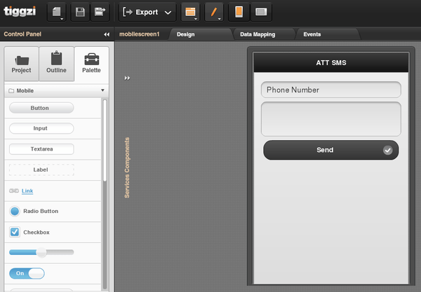 I recently signed up for AT&T Developer Program and one of the services they provide is for sending SMS messages via REST API. Below is a story of how I built the app, in picture. I used Tiggzi Mobile App Builder. I literally built the app in about 25 minutes (most of the time was spend reading their API documentation). The app is built with HTML5, jQuery Mobile, and REST services.