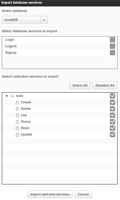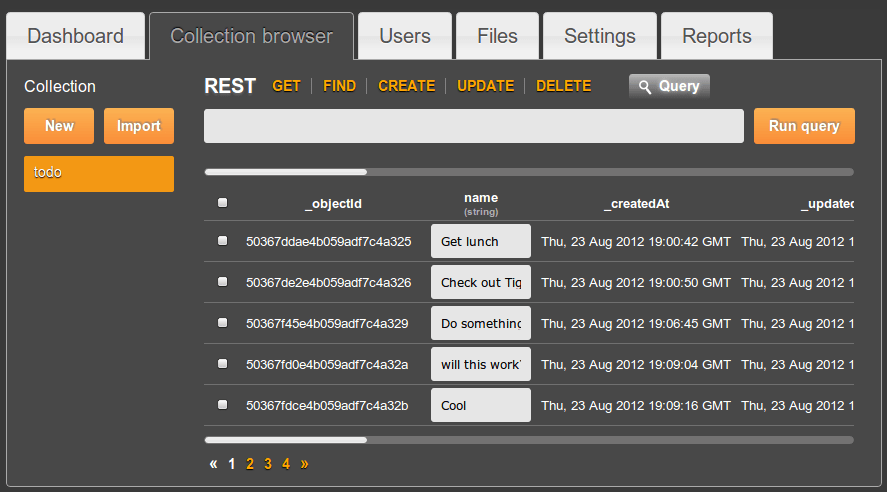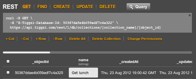 As the database is part of the Tiggzi mobile platform, we are able to give you much better integration between the builder and the database (and other soon available services). It’s very simple but extremely powerful. From the app builder, you can browse all the databases you have, select a particular collection and instantly generate all the REST services for that collection. Check it out.