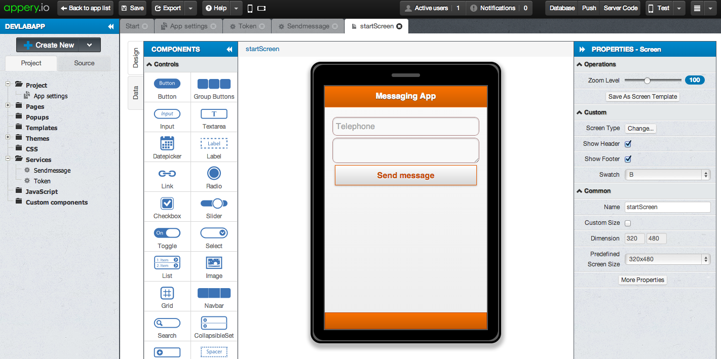 Once all the APIs were covered, we spent the remaining of the day using Appery.io to build a jQuery Mobile app with AT&T SMS API. The app looked like this: