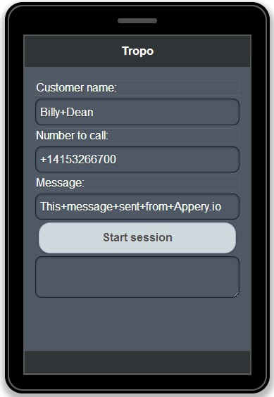 Tropo also provides a great REST API that lets you configure and control Tropo applications through the use of RESTful methods. This includes the ability to create new Tropo apps, add phone numbers to them, delete applications, and much more. And as Appery.io provides a very comfortable way to work with REST API’s, it’s unbelievably easy to add Tropo communication features to your Appery.io app.