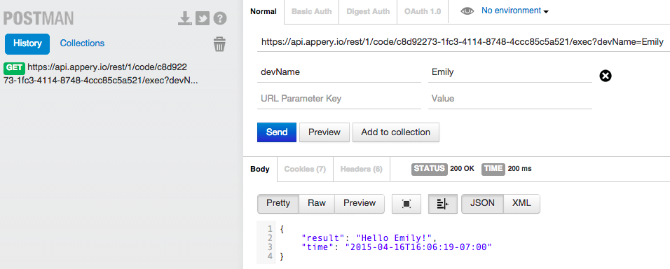 The Appery.io Server Code allows to build any app logic and instantly expose it via REST APIs. You use Javascript to write the script which runs on the server. You don’t need to worry about deploying or running any servers, all is done in the Appery.io cloud. An example is the best way to show it, so let’s do that.
