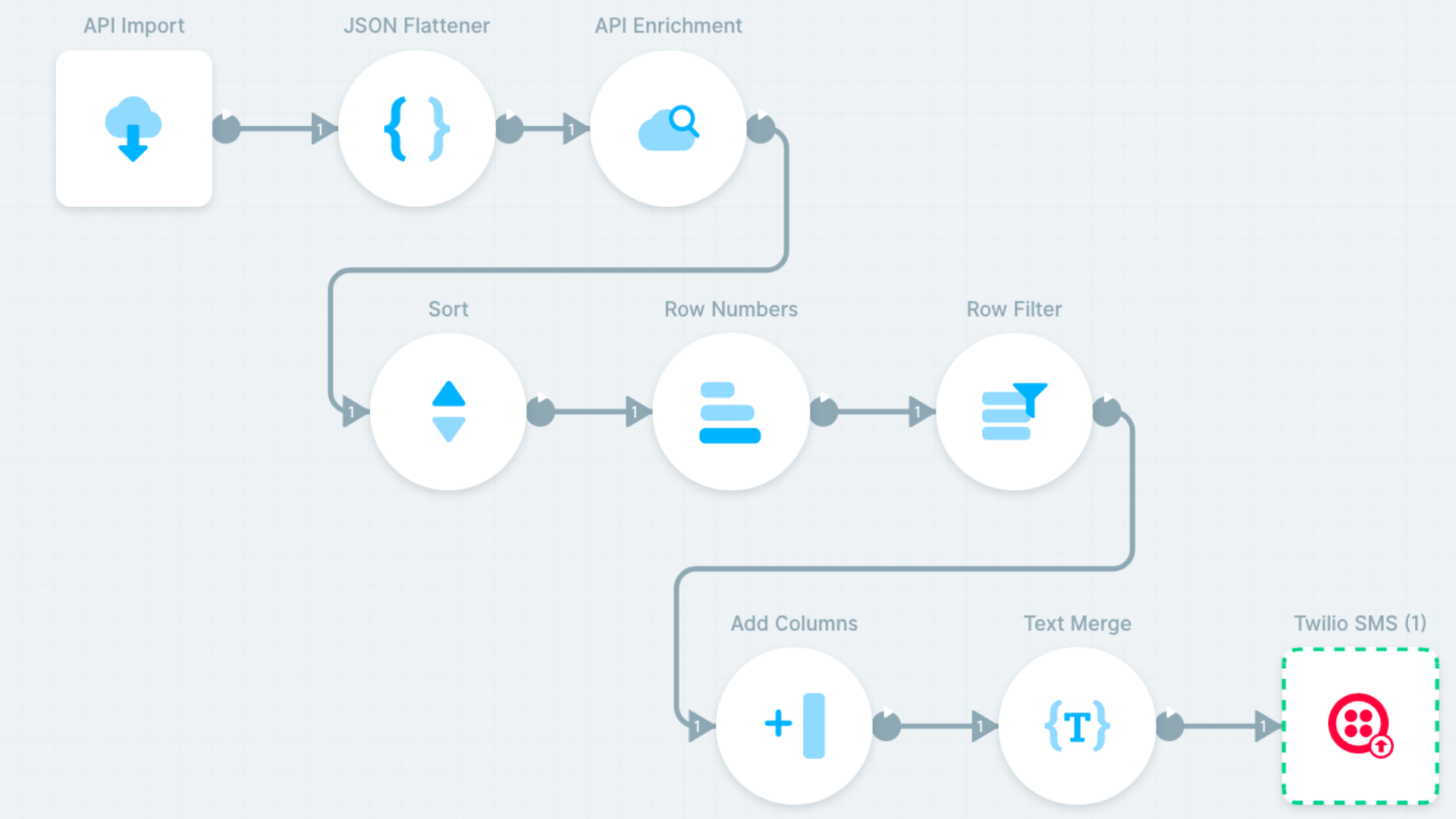 This tutorial showed you how to build an application that texts positive COVID-19 news. You can easily configure to send any other news as well (just update the query in News API). What I find incredible is that we used three different services: News API, Watson NLU, Twilio and built a flow in Parabola all without writing a single line of code.