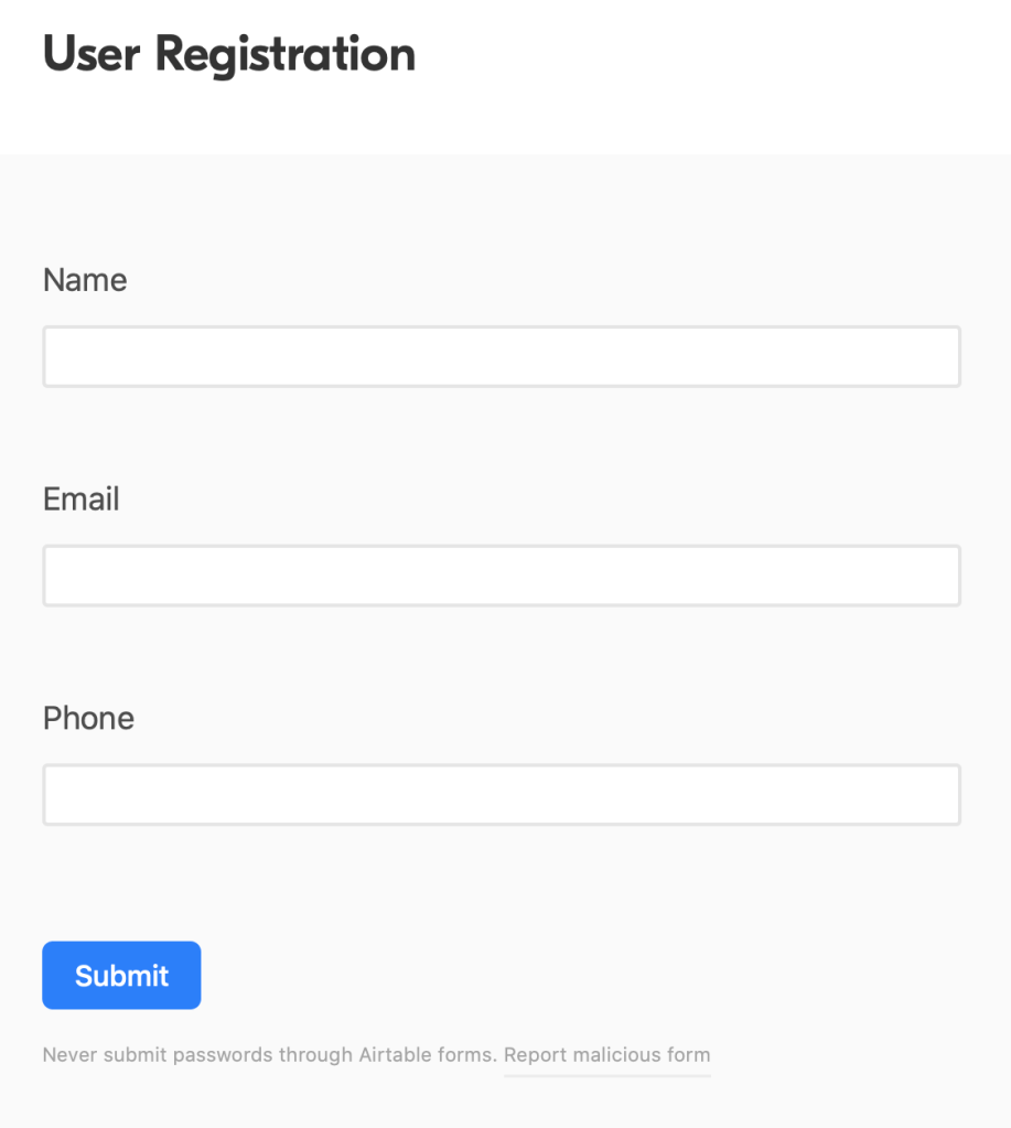 Airtable can be replaced with Google Sheets and Google Forms as they provide very similar functionality. There are probably other tools that can be used as well.