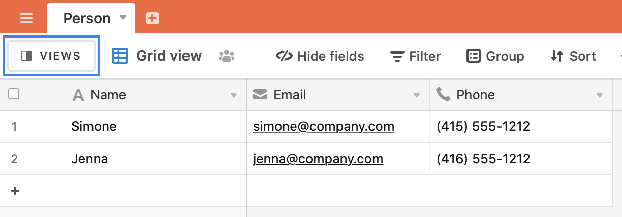 There are three columns: name, email and phone.