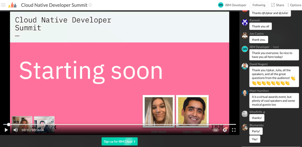 Julia Nash and Upkar Lidder from IBM Developer hosted a half-day Cloud Native Developer Summit on Tuesday, October 13, 2020. In case you missed the live event you can watch a replay of the entire summit (event agenda is right after the image).