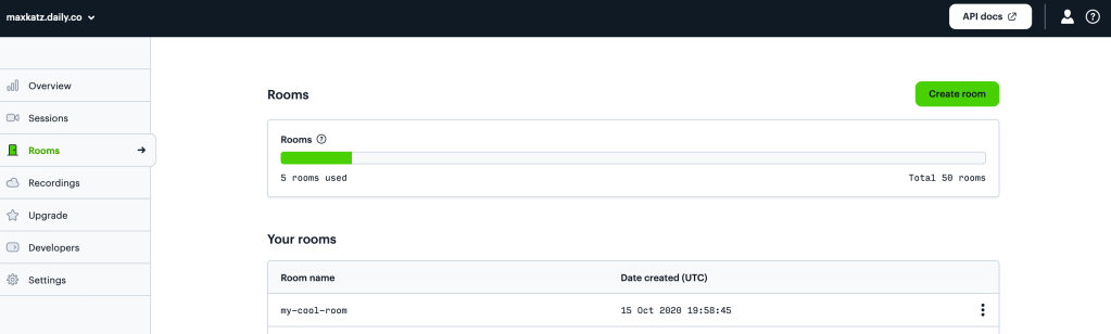 Next I’m going to show you to create a video room using the Daily dashboard.