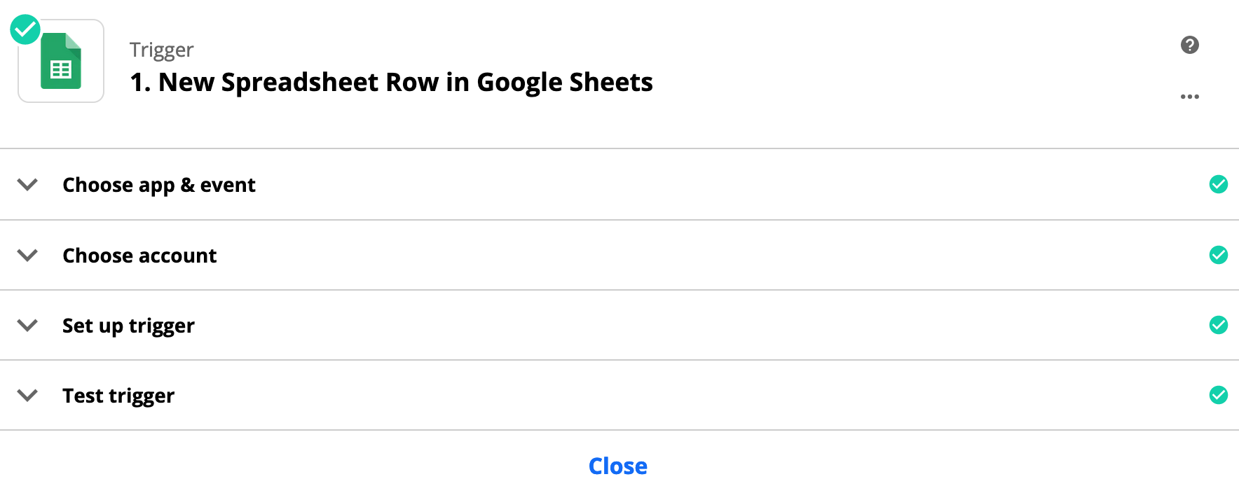 Usually each step in a zap has a number of sub-configuration steps. This is how it looks for Google Sheets: