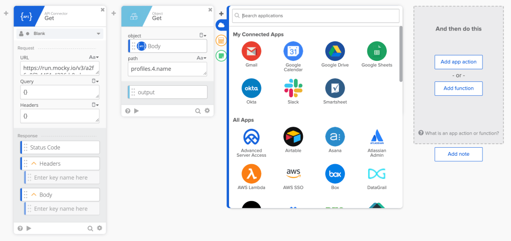 This video goes over the three building blocks of a workflow: App Action card, Function card and Notes card.