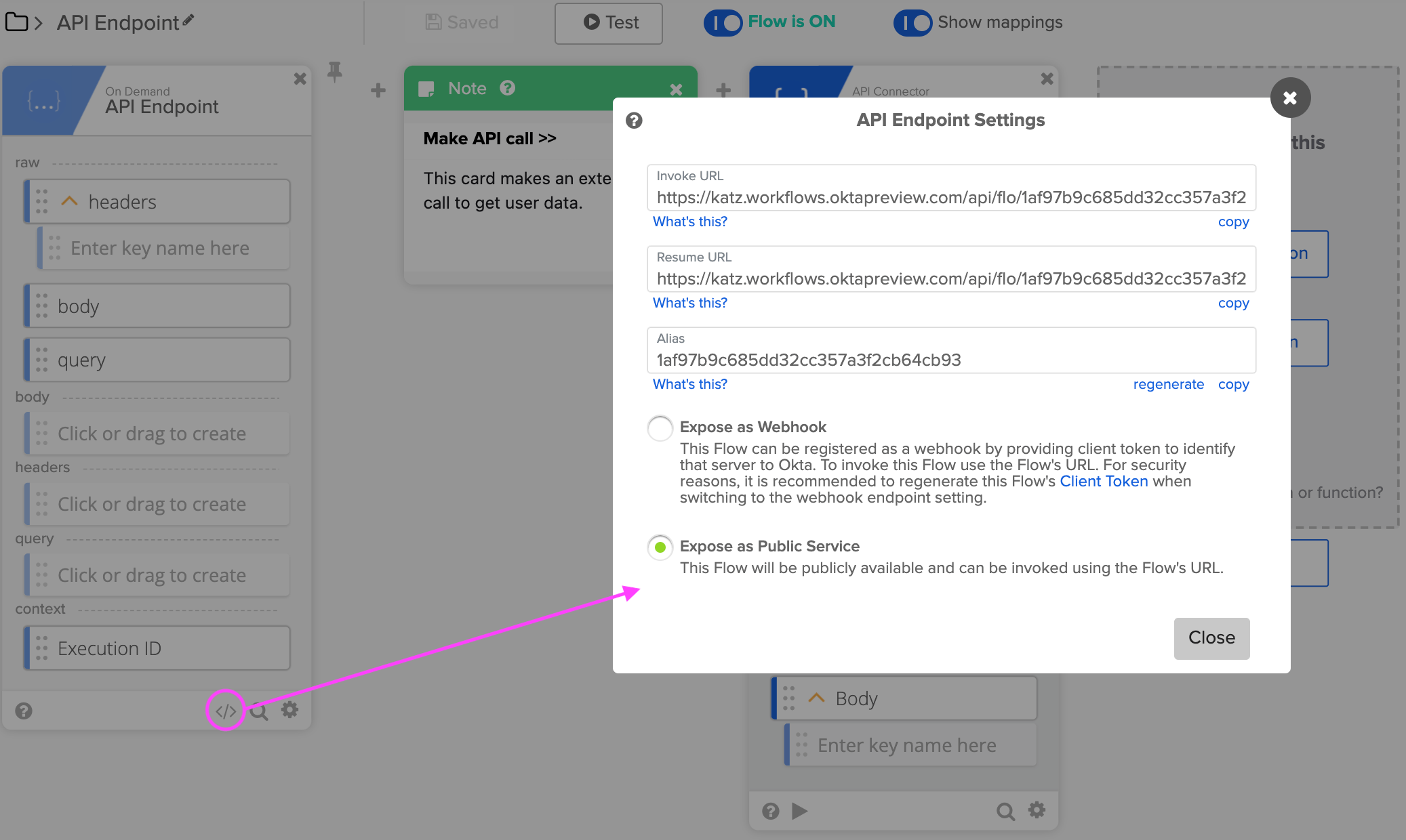 and the fourth way is as an API endpoint. This means a flow can be invoked from any external system, based on that system logic via an API call. Cool, huh?
