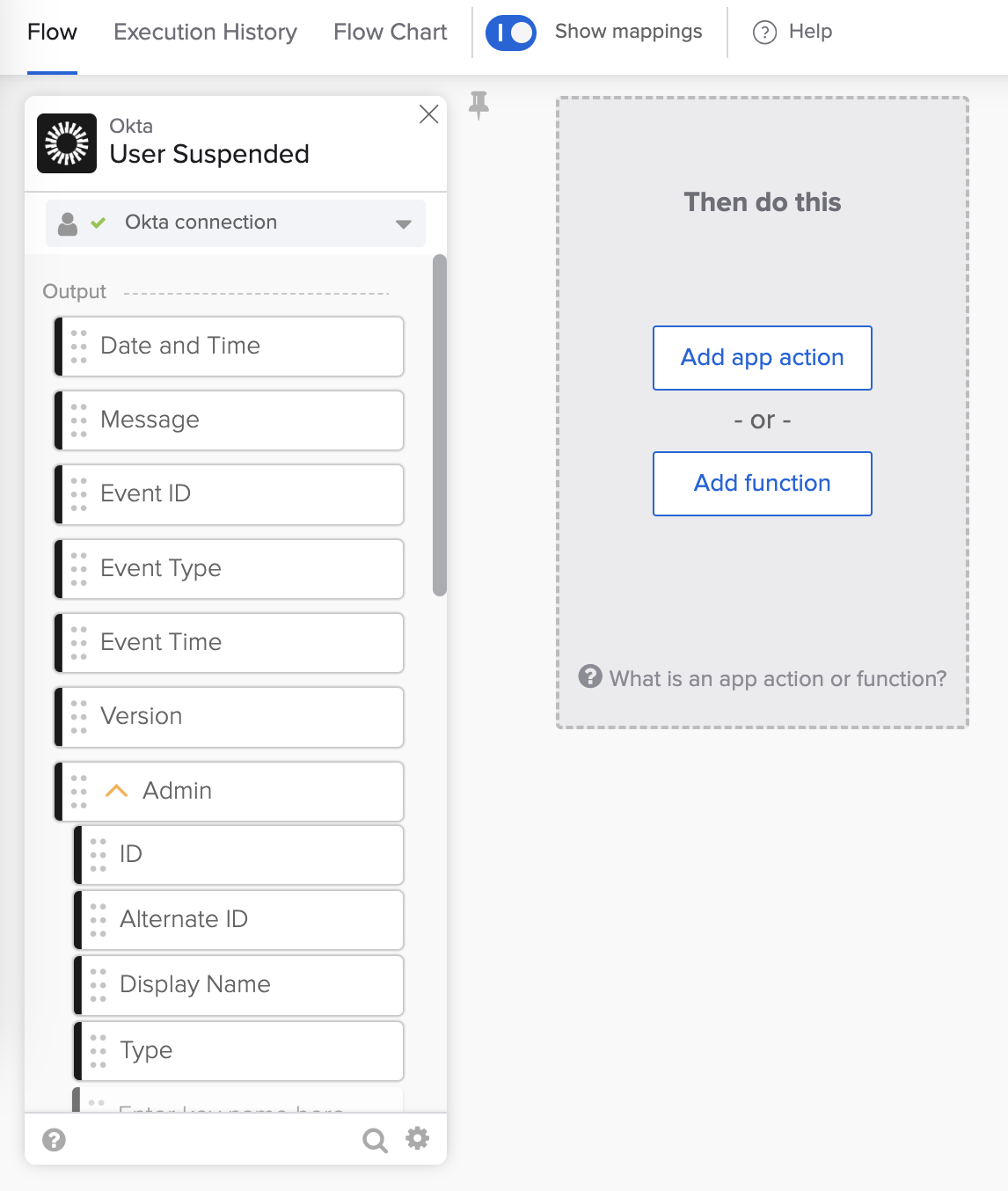If this is your first flow or you don’t have a connection to Okta, you will see the following and need to create a connection to Okta.