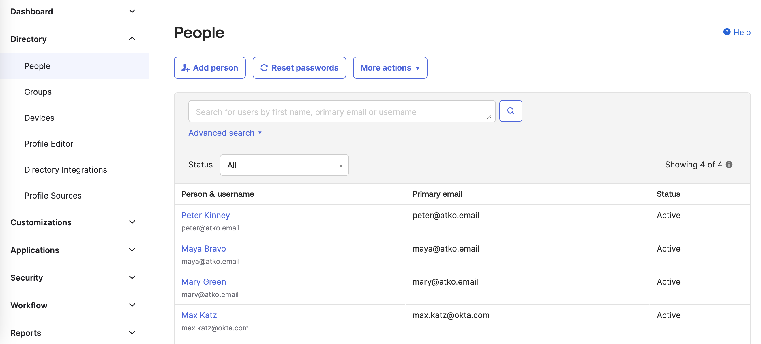 - In another browser tab, go to Okta organization > Admin > Directory > People