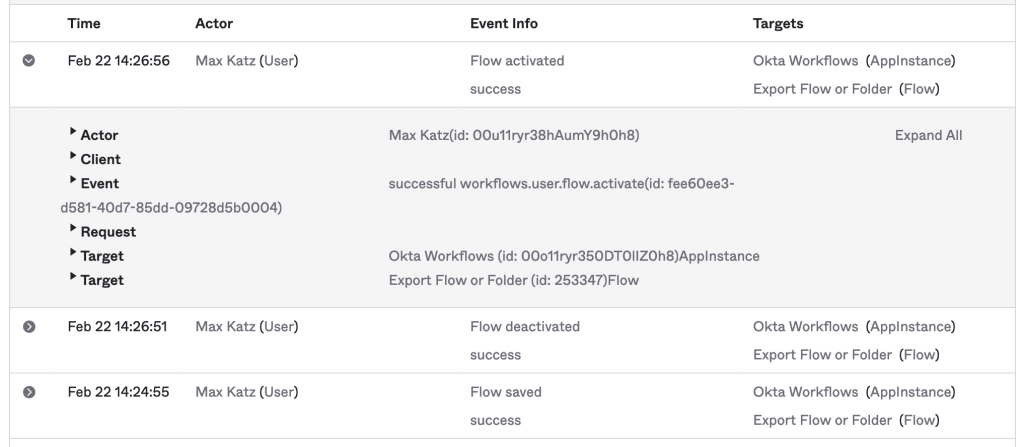 Workflows System Log messages allows Workflows builders to see 17 new Workflows events in Reports > System Log. This allows builders to search events and create reports from a single location. With this update, builders will be able to track create, read, update, and delete operations for flows, tables, and connections within Workflows.