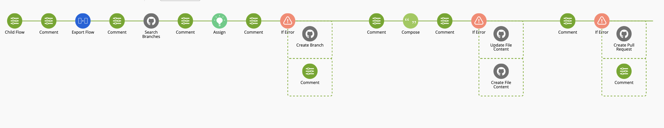 Flow backup allows Workflows builders to export flows and folders in Workflows and back them up to GitHub or Google Drive. With GitHub it’s now possible to create a commit and submit a pull request – all within a flow.