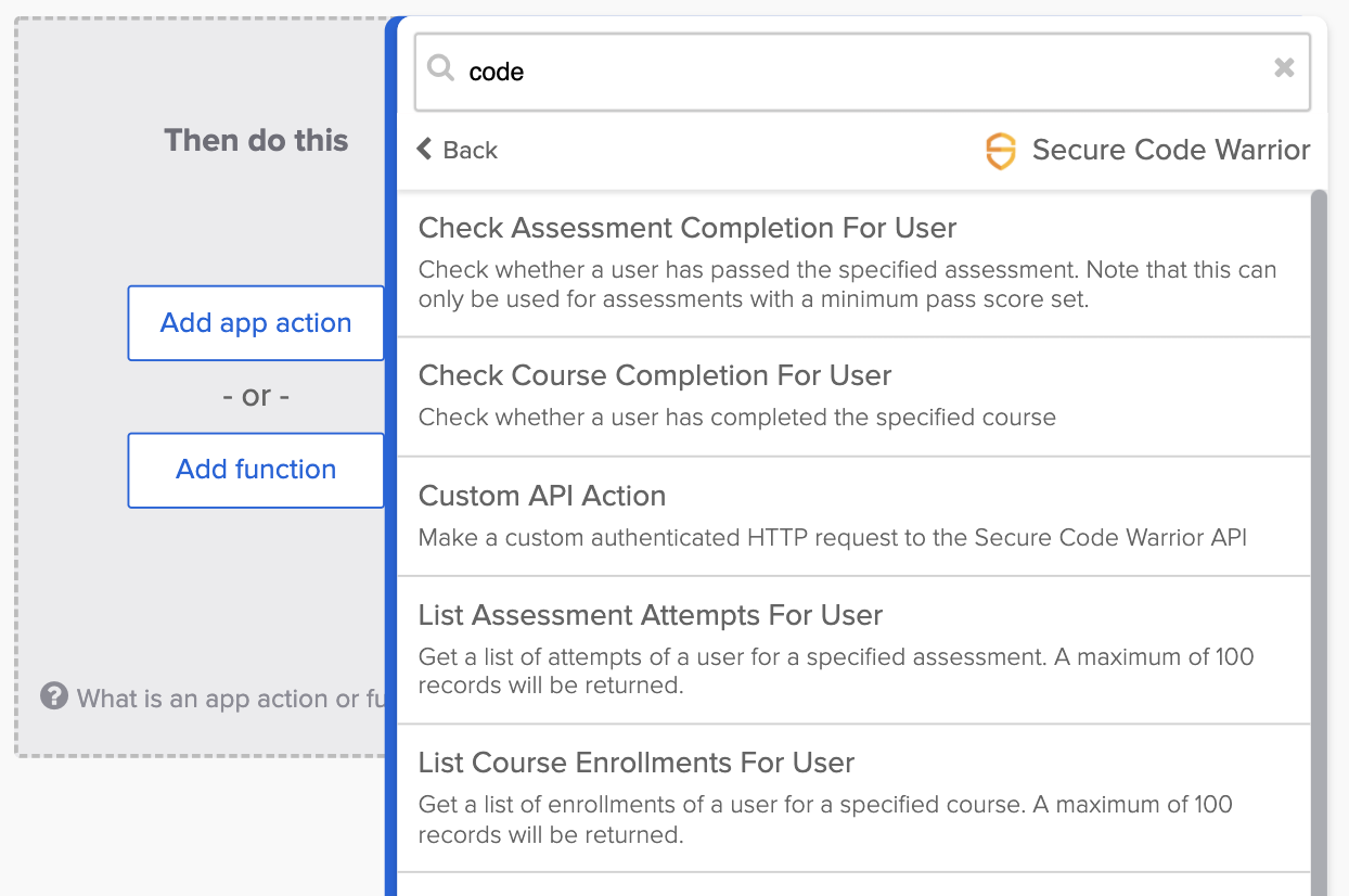 The Secure Code Warrior connector is the first 3rd party built connector. For example, you can the validate security competency of developers using an assessment before granting access to sensitive code repositories.
