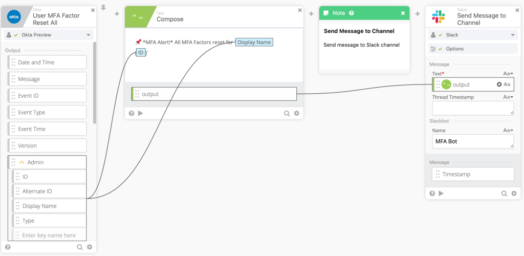 - A step-by-step tutorial with lots of screenshots:ย Build Your First Automation With Okta Workflows: Notify When User Isย Suspended