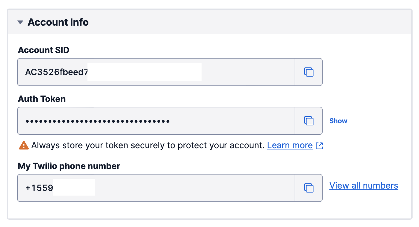 You need a Twilio account with a number from which you can send SMS messages. In your Twilio account go to the console. There you will see the information you need to send SMS messages. You will need Account SID, Auth Token and My Twilio phone number.