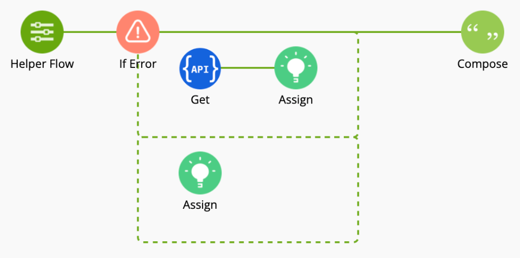 When calling an external API results in an error you want to gracefully handle the error and continue the flow execution. One way to handle an error is to use Error Handling – If Error card. It’s similar to try/catch logic.