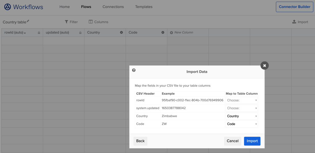 When a building a flow that leverages a table you might want to create another version of the table for testing. Go back to table list, click duplicate icon to create a copy of a table.
