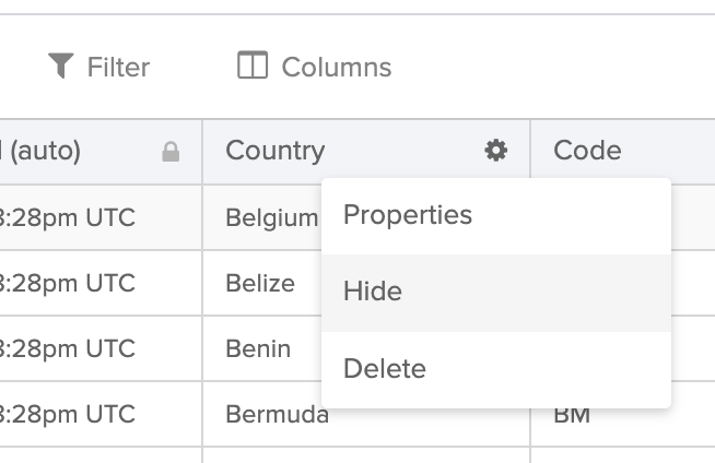 You can also hide a column by clicking the column’s gear icon.
