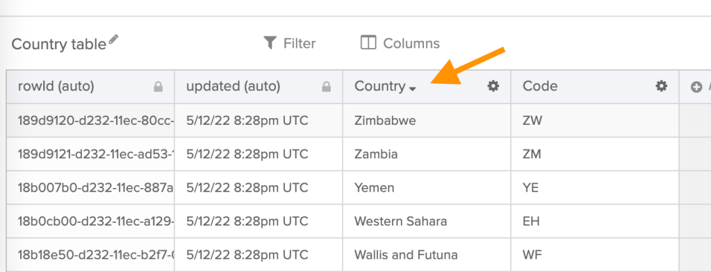 - Sorting by a column