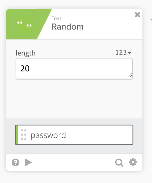 If you have a flow that creates new users and you also need to set their passwords, one option is to use Text – Random card to generate a password.