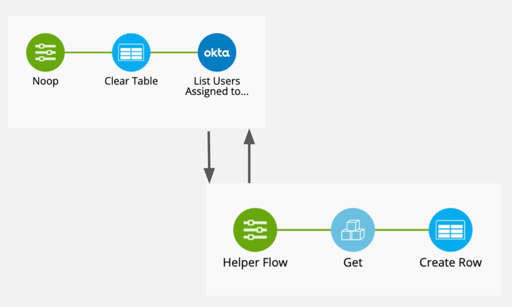 - How to stream users to a helper flow in order to save them to a Workflows table