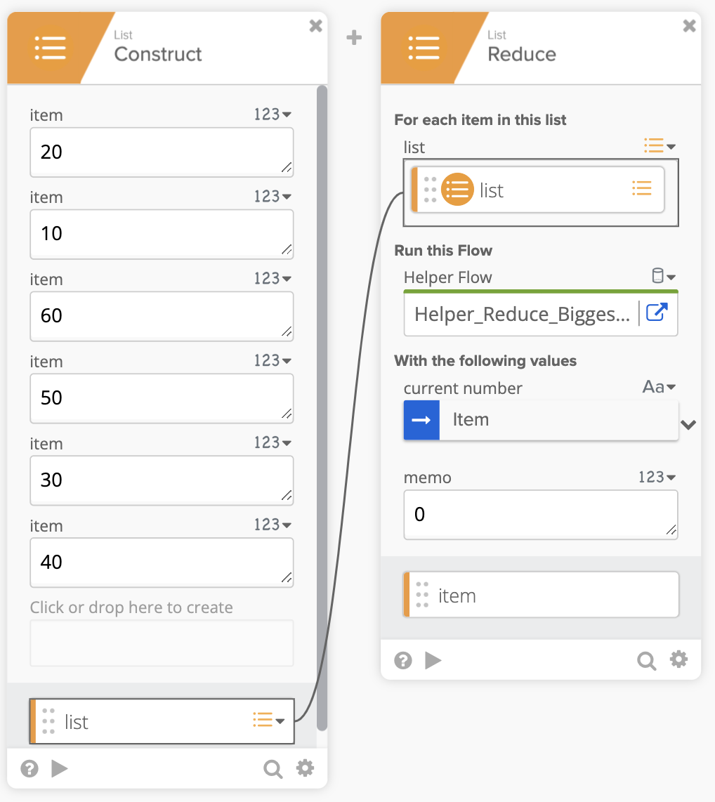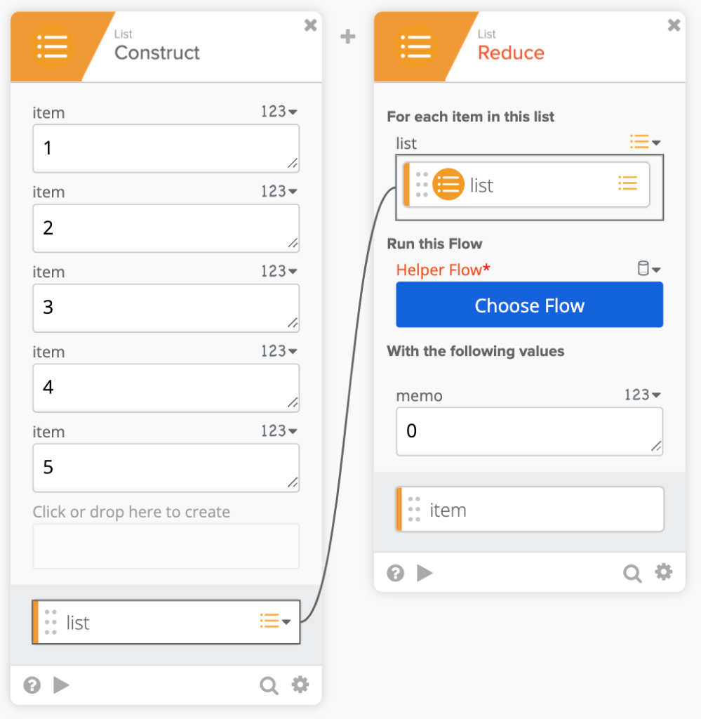 Now let’s build the helper flow so you can set it in the List-Reduce card.