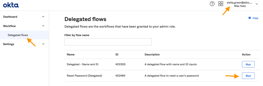 A delegated flow has the Okta – Delegated Flow card in the first place: