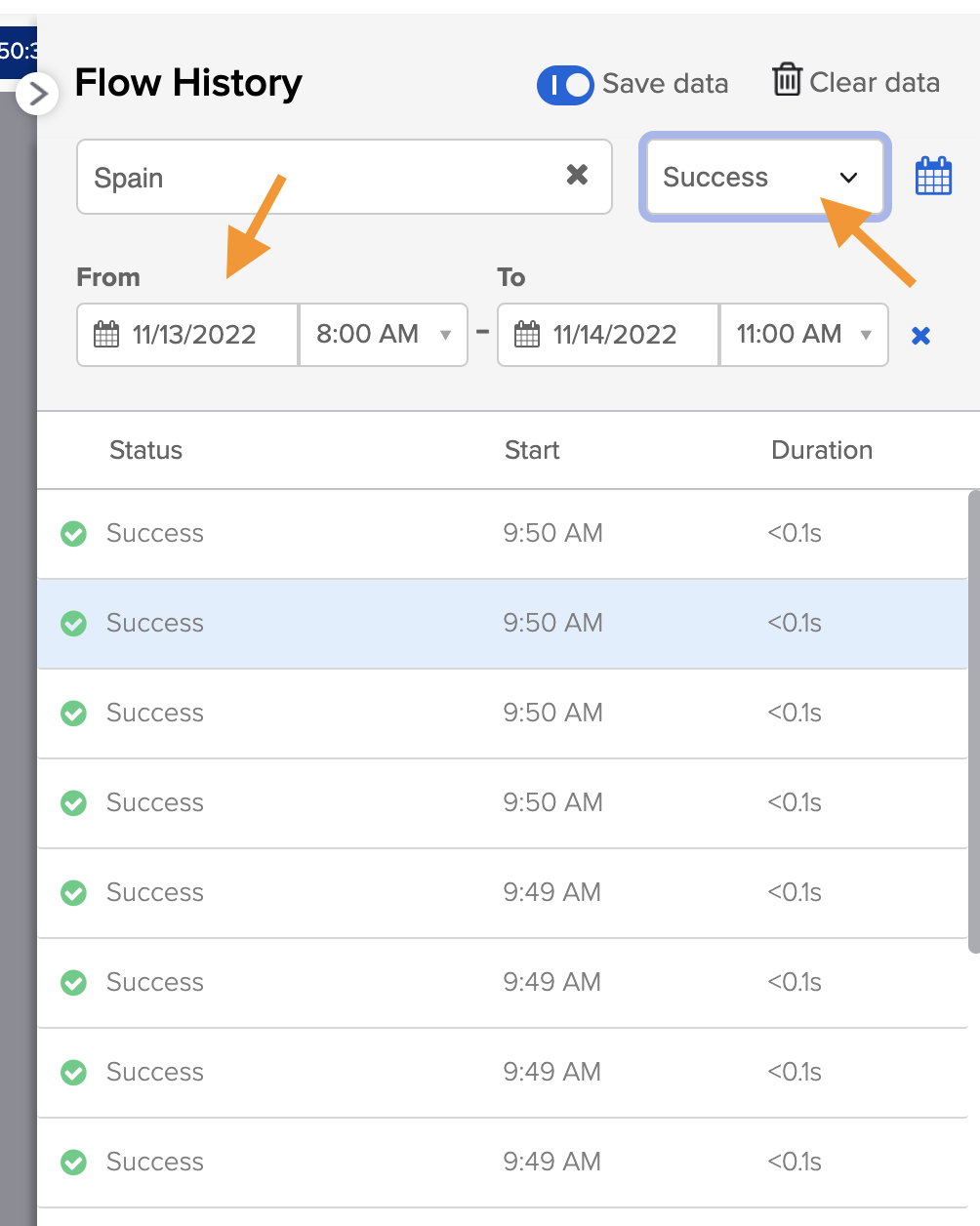 Search flow history allows to search flow history executions for text. When flow history has a large number of executions, finding a particular text, email, or an ID is difficult. You have 10,000 employee records that flow processes. You want to find all executions where the employee is from a specific country. This is where search flow history helps.