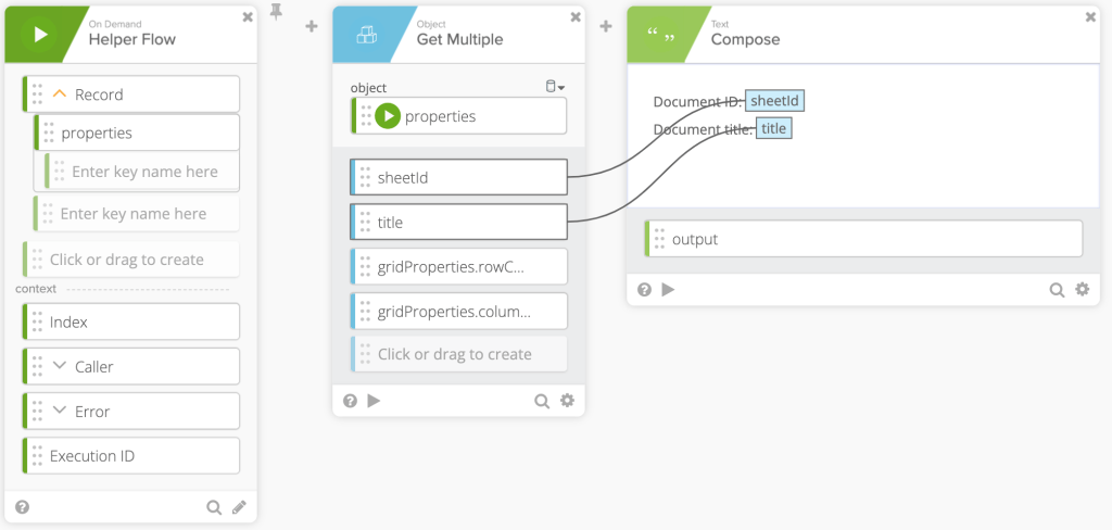 You can take any output value defined on the Object – Get Multiple card and connect it to the next card. Here is an example: