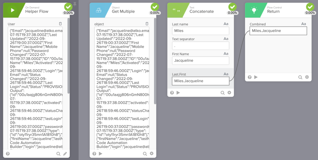 - Each new name (lastname.firstname) is returned to the main flow. This puts the new name into a list