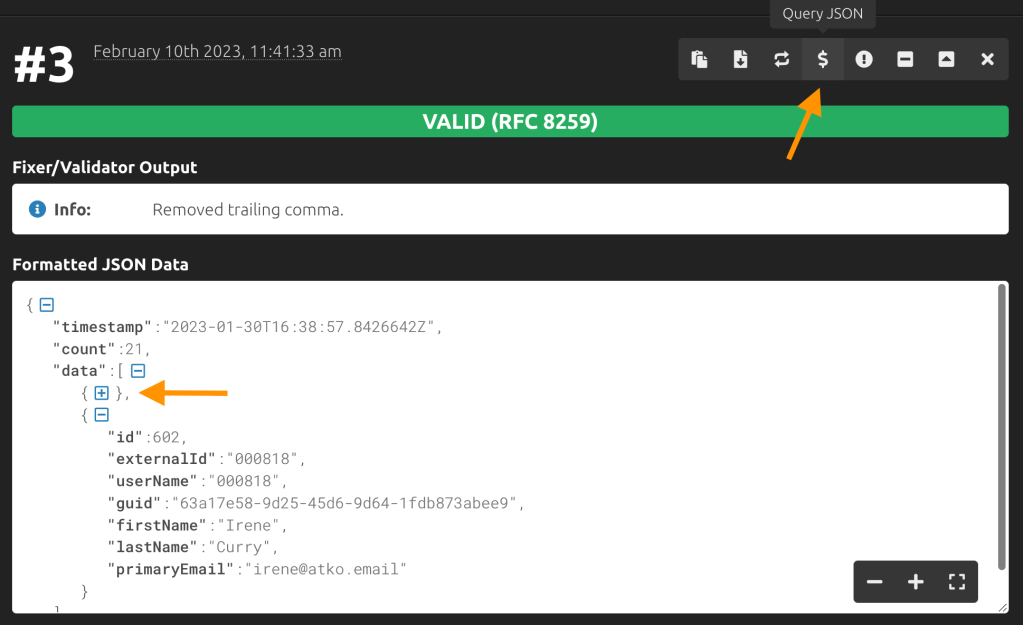 Collapse/expand nodes and run query the JSON file (next screenshot):