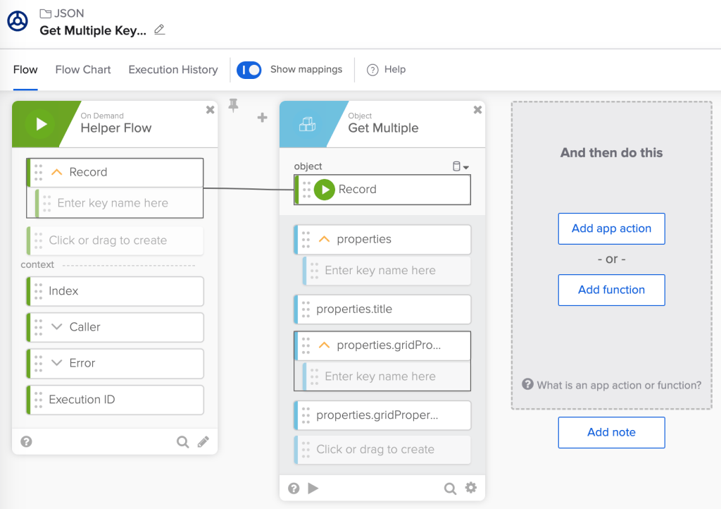 - The Get Multiple Keys_Helper helper flow is called for each item in the list (passed in the With the following values section)
