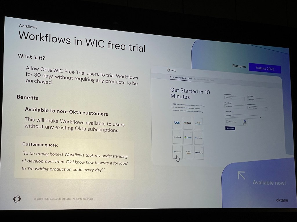 I want to share Okta Workflows in pictures from Oktane 2023 in this blog post.