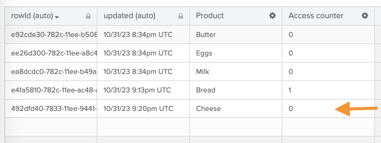 - Using the Tables – Update Row card, update the record by increasing the Access counter column by 1.