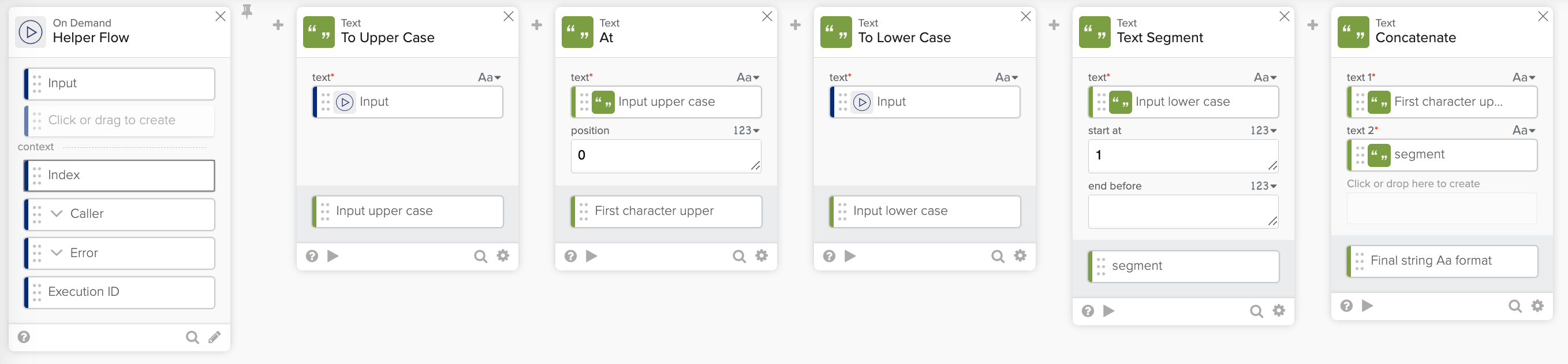 The following flow capitalizes the first letter and lowercases the rest of the text: