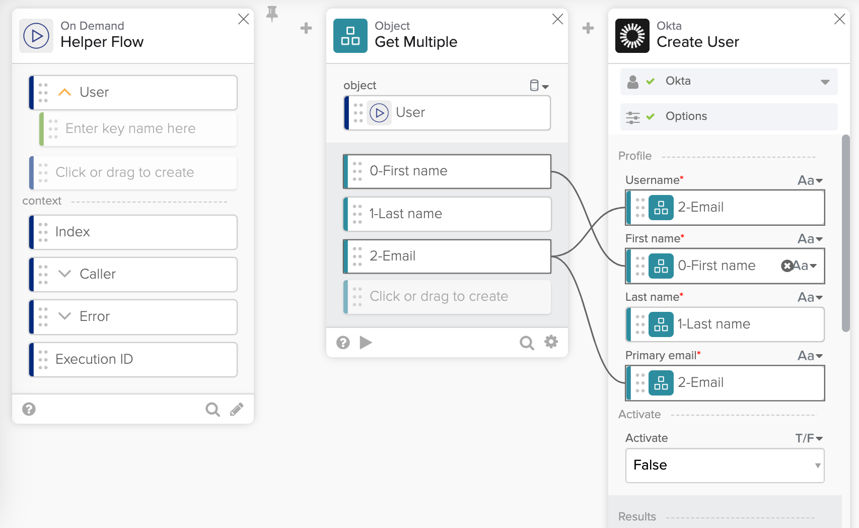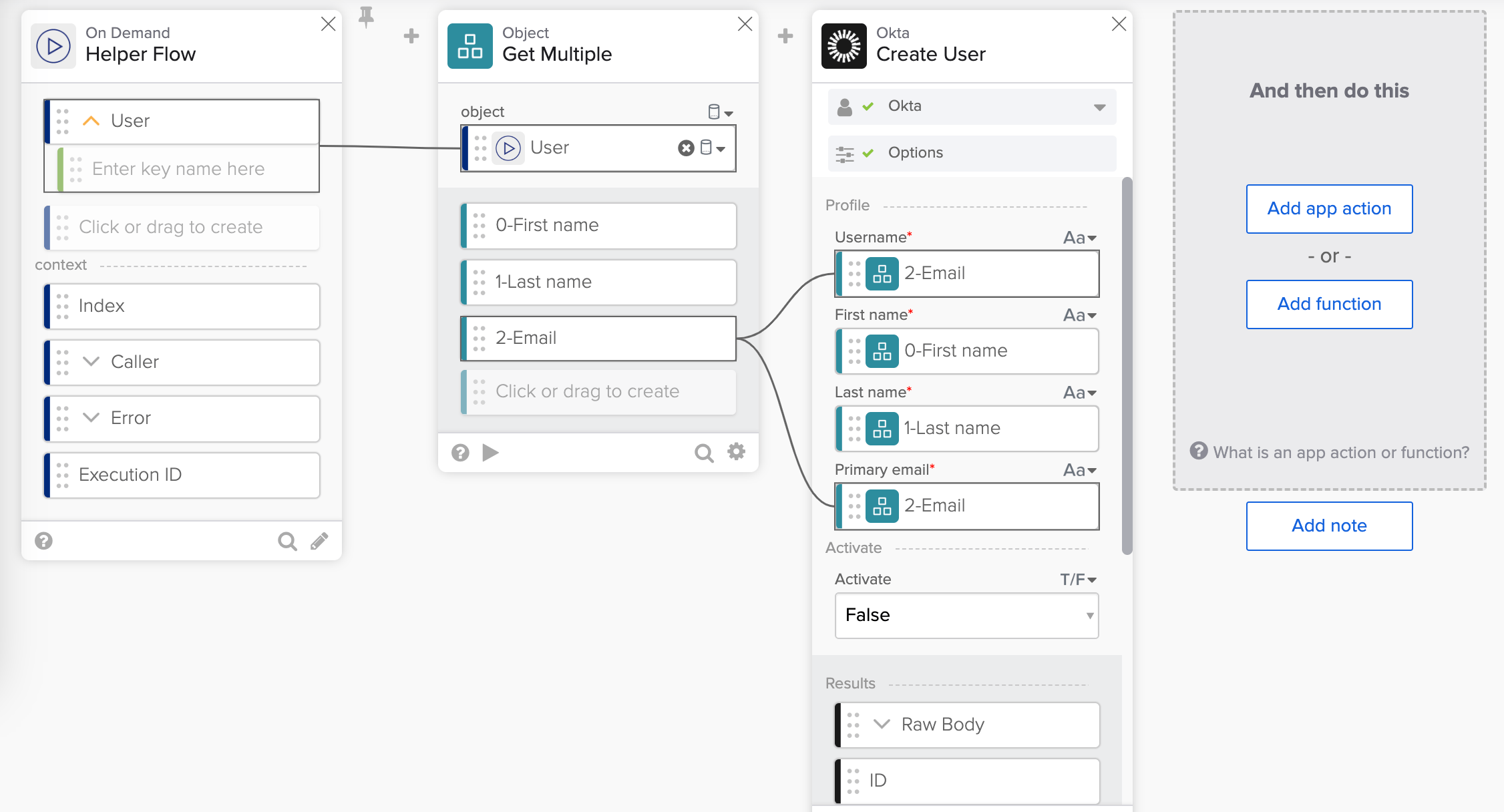 Creating a user with the Okta – Create User card