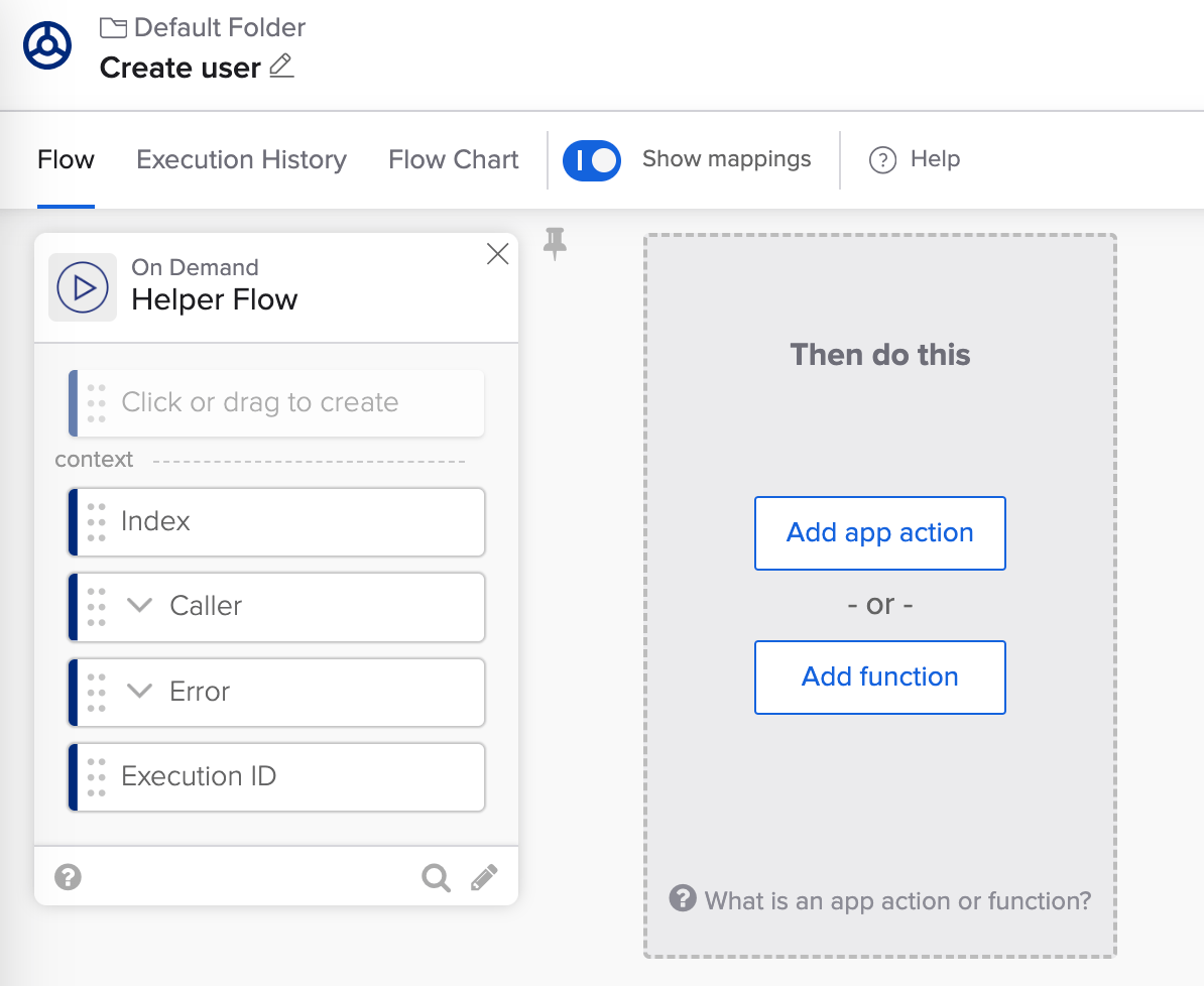 - Click the Default Folder and choose the Create User helper flow.