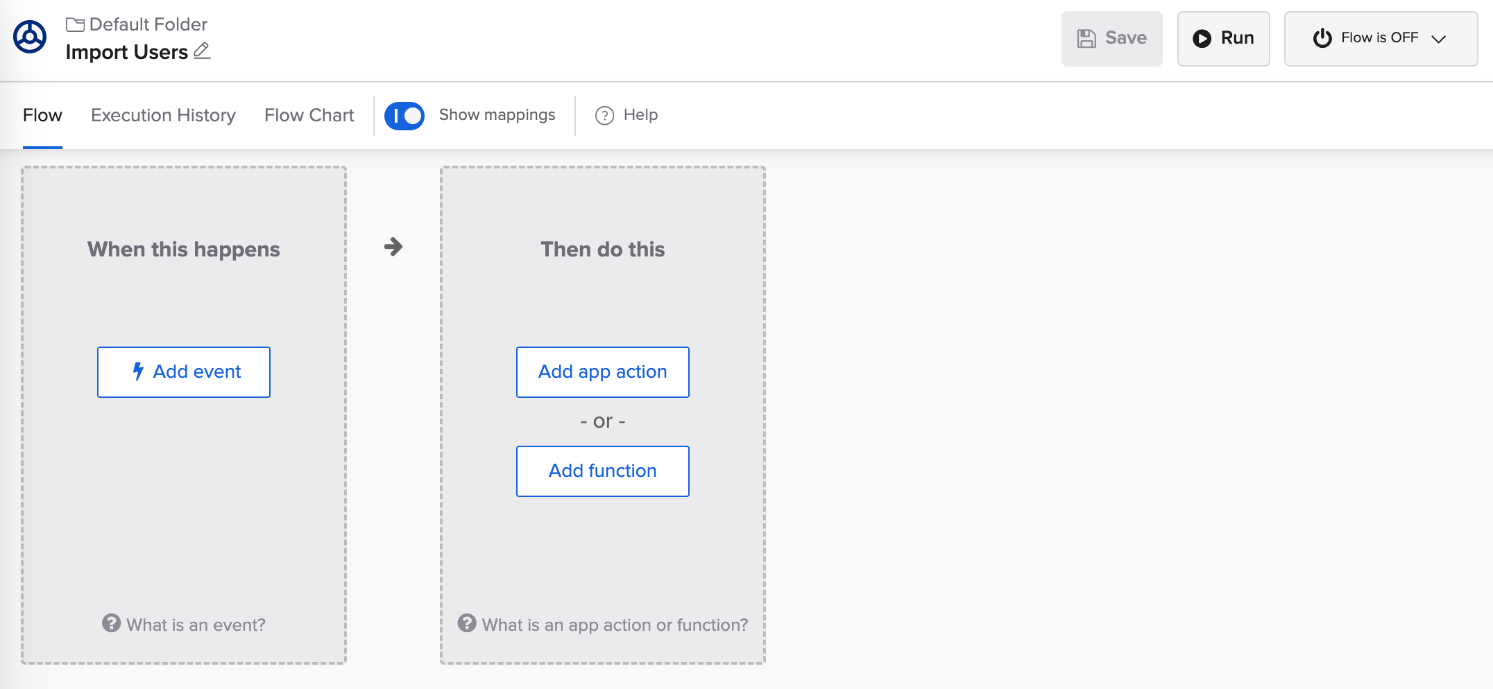 - In the Default Folder, click + New Flow to create a new flow.
