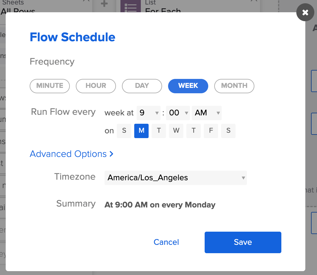 - How to set up a flow to run on schedule.