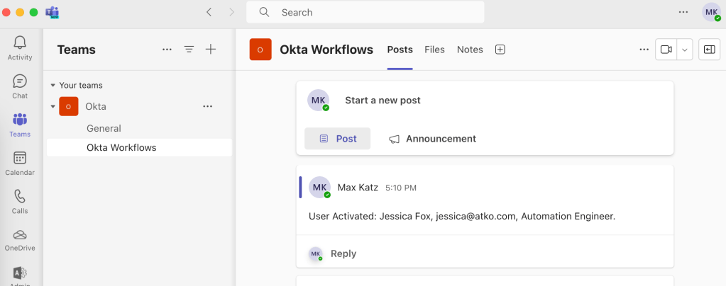 This step-by-step tutorial will teach you how to send event notifications to a Microsoft Teams channel when a new user is activated in Okta.