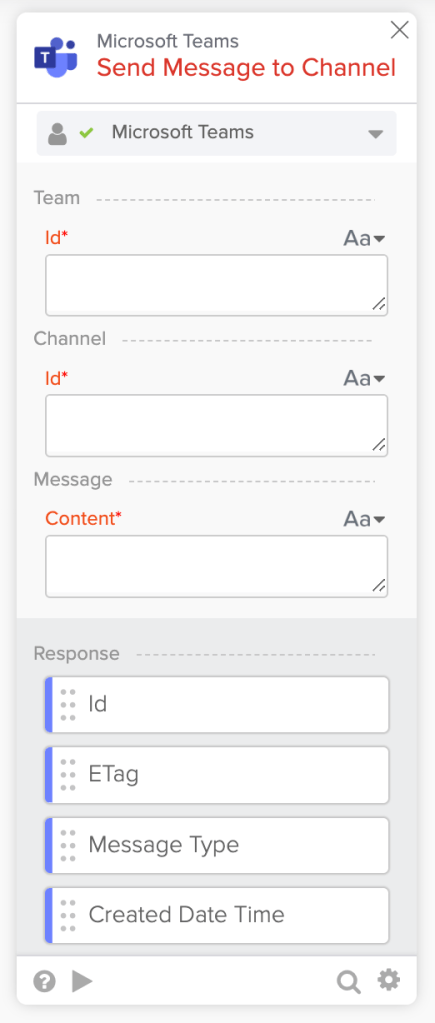 To send a message to Microsoft Teams, you will use the Microsoft Teams connector.